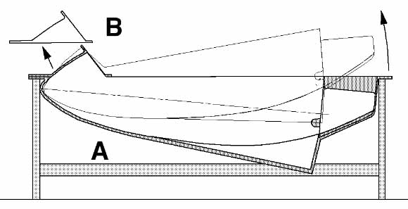However, I used another method which is shown below. Since the JT-5 fuselage is open on the top you can pull the pod from the mold upwards. You only need to have a small part B (see picture below) removable in the mold.