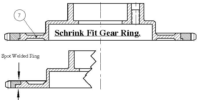 Drawing additions: Sheet no.4. Some builders have requested an alternate method for the rotor head main gear machining. One way is to use starter gear ring from an outboard motor or other small engines. A 77Z starter gear rings can be found in Rotax 503 and 505 engines, which can be used in the JT-5 prerotator if the dimensions of the rotor head assembly is altered slightly. Only the ring must be hardened to HB 240-280. You can use schrink fit, spot welding or other methods to fit the gear ring. |