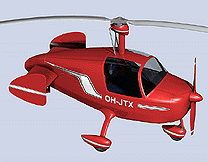 | JT-13B, a side by side design powered by a Rotax 914 engine. This variation was inspired by the availability the 115 hp Turbo Rotax engine. This engine is installed in many 2-seat gyros (like Magni M24, Xenon, etc) but unlike in the other gyros I wanted to try the possibility to install the cooling radiator on the nose of the aircraft. The cooling hoses are inside the aerodynamic casing under the belly. The air flow to the tail planes would be smooth with minimum turbulence and a simple valve in the wall between radiator space and cockpit would provide cabin heating which is a necessity up here in the north. I also wanted to see if the readily available aluminum rotor blades could be installed in the JT-type rotor head. The answer appears to be yes.